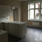 Kjøkken m/ dør ut til felles trappegang og felles uteplass